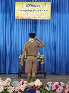 “โครงการลูกเสือจิตอาสาพระราชทาน” ให้ผู้ผ่านการฝึกอบรมหลักสูตรมีภารกิจหลักในการทำกิจกรรมเพื่อถวายงานพระบาทสมเด็จพระเจ้าอยู่หัว ในการช่วยเหลือประชาชนในสังคมและชุมชน มีจิตอาสา ตามทักษะความรู้ความสามารถและศักยภาพของตน โดยวันนี้ได้จัดพิธีมอบผ้าพันคอจิตอาสาพระราชทาน ให้กับลูกเสือจิตอาสาพระราชทาน ที่ปฏิบัติหน้าที่ครบตามหลักเกณฑ์ที่สำนักงานลูกเสือแห่งชาติกำหนด จำนวน 24 คน
