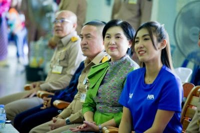 พล.ร.ต.โชติรัตน์ อุตมเพทาย ผู้จัดการโรงเรียนสัตหีบ เขตฐานทัพเรือสัตหีบ เป็นประธานในพิธี พร้อมด้วย น.ท.หญิง สุรีย์ อุตมเพทาย หัวหน้ากลุ่มงานการพยาบาลห้องผ่าตัด โรงพยาบาลสมเด็จพระนางเจ้าสิริกิติ์ กรมแพทย์ทหารเรือ และคุณเดือนเพ็ญ เนินไธสงค์ บริษัท เอ็นบีเอ เมเนจเมนท์ ร่วมกิจกรรมในครั้งนี้