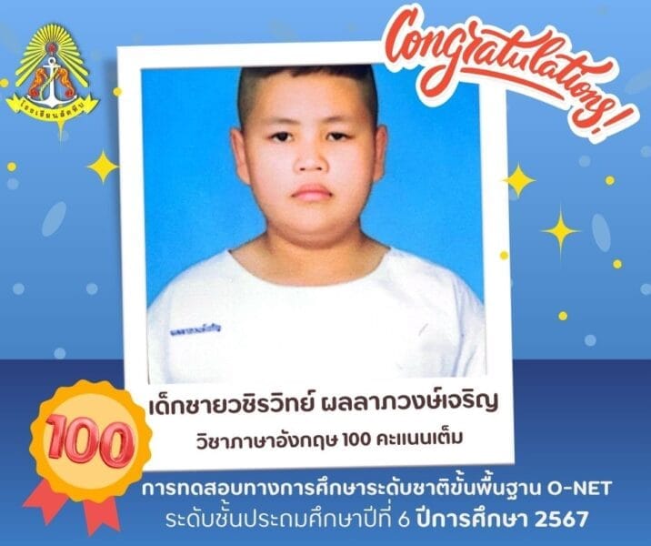 โรงเรียนสัตหีบ ขอแสดงความยินดีกับนักเรียนที่ผ่านการทดสอบทางการศึกษาระดับชาติขั้นพื้นฐาน O-NET ระดับชั้นประถมศึกษาปีที่ 6 ได้ 100 คะแนนเต็ม วิชาภาษาอังกฤษ และคะแนนสูงสุดในแต่ละวิชา