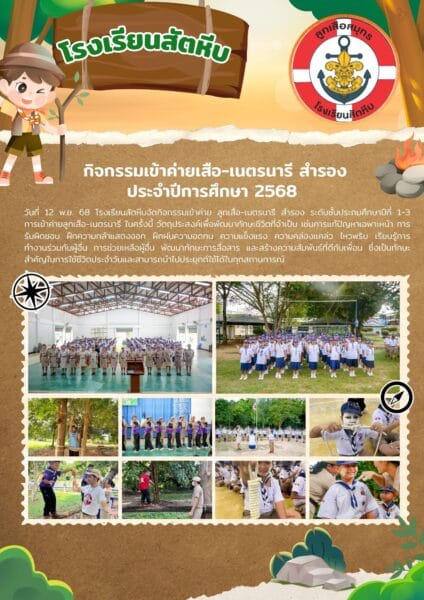 โรงเรียนสัตหีบ จัดกิจกรรมเข้าค่าย ลูกเสือ-เนตรนารี สำรอง ระดับชั้นประถมศึกษาปีที่ 1–3 ประจำปีการศึกษา 2568