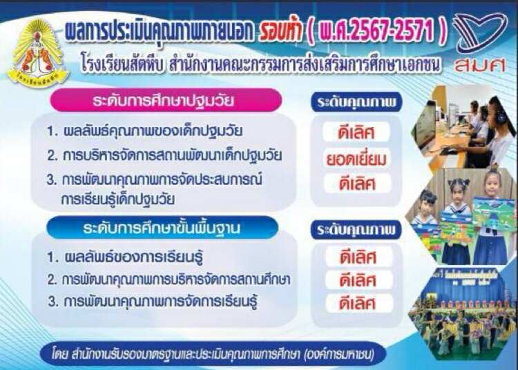 โรงเรียนสัตหีบ ผ่านการรับรองการประเมินคุณภาพภายนอกรอบห้า(พ.ศ.2567-2571) จากสำนักงานรับรองมาตรฐานและประเมินคุณภาพการศึกษา (องค์การมหาชน) (สมศ.) โดยผลการประเมินอยู่ในระดับดีเลิศทุกด้าน ทั้งระดับปฐมวัย และระดับการศึกษาขั้นพื้นฐาน