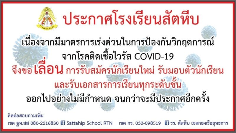 จึงขอเลื่อนการรับสมัครนักเรียนใหม่ รับมอบตัวนักเรียน และรับเอกสารการเรียนทุกระดับชั้น